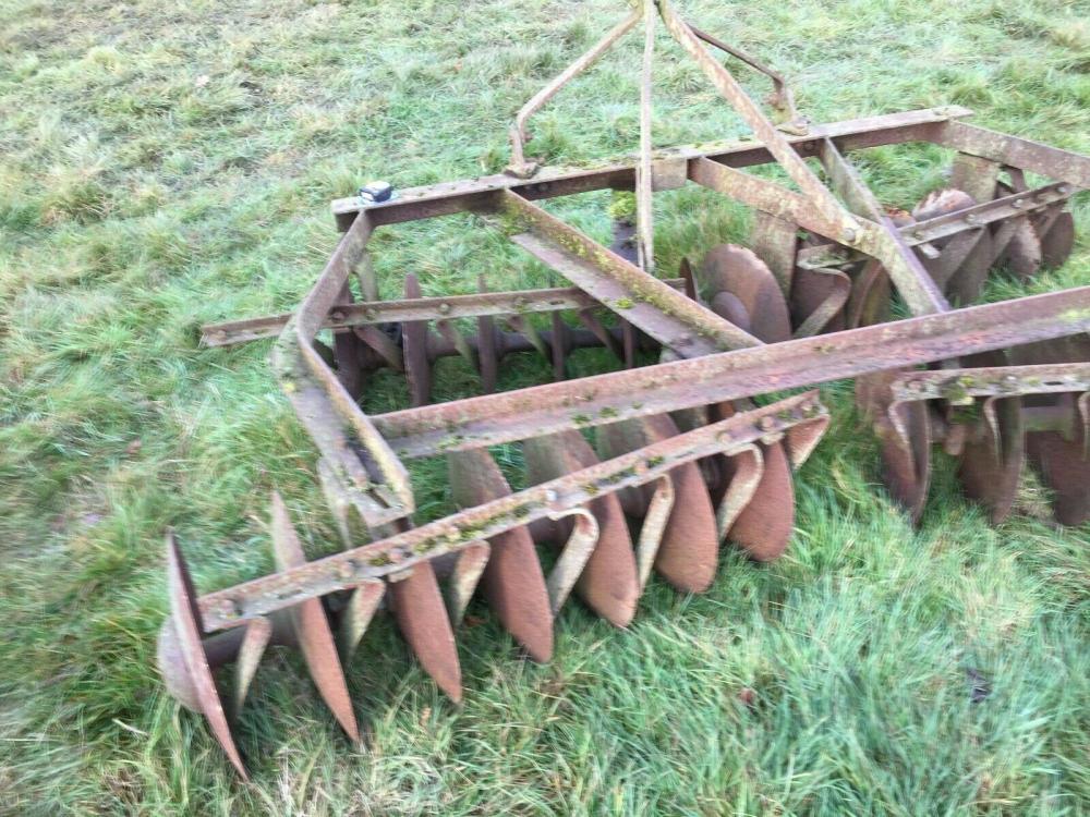 Set of tractor mounted Disc Harrows – three point linkage – good strong frame – approx. 8 foot wide – useful for seed bed cultivation – tidying up rough ground – suit small tractor and larger