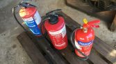Choice of fire extinguishers – water – foam and powder – 2kg – 6 kg – 9 kg – some require refilling – some half charged – this advert is for a part filled 9 kg powder extinguisher – the prices range from £5 to £12 – please call with your requirement – the item can then be listed on ebay