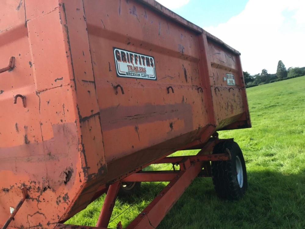 Griffiths Tipping Trailer - monocoque construction - good well built trailer - good tyres - tips nicely - ideal grain trailer - dung trailer -more detail and images upon request - viewing welcome - delivery arranged