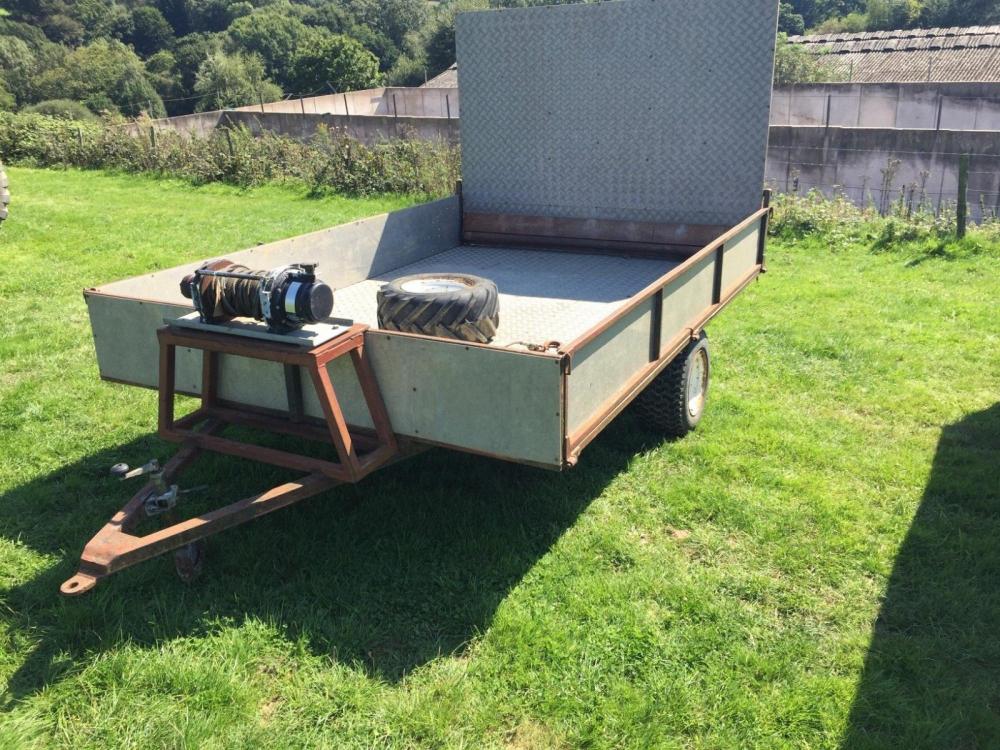 Low load level trailer – two wheel trailer with a spare – steel with chequer plate floor – with a hydraulic winch that is piped for a tractor – pin hitch – sprung assisted one piece tail gate – ideal for dragging items onto the trailer – the loading area measures 10 foot by 7 foot – good strong hydraulic winch – useful trailer – located close to Gatwick Airport – loading – delivery to most parts of the uk – more detail please call 07771882766 – 01342842478 – poor reception – call tx or leave a message – many other items for sale – farm and plant – see other ebay listings – price £700