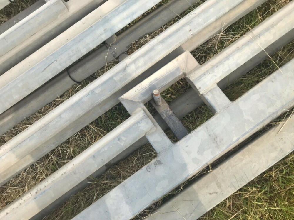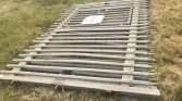 Pair of galvanised pallisade security / site / yard gates – 11 foot by 7 ft 6 high – one with pedestrian entrance – good strong gates – more detail and images upon request